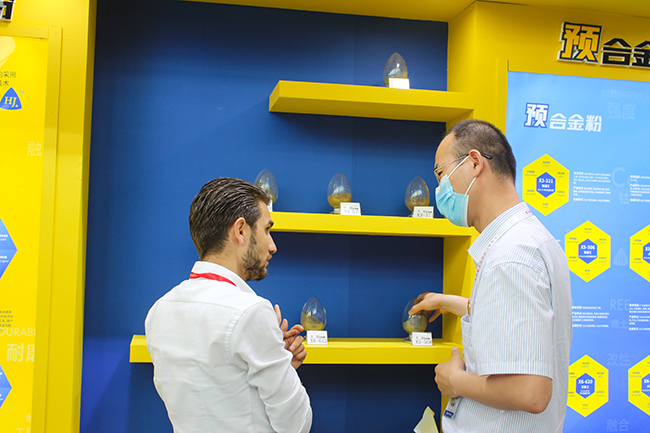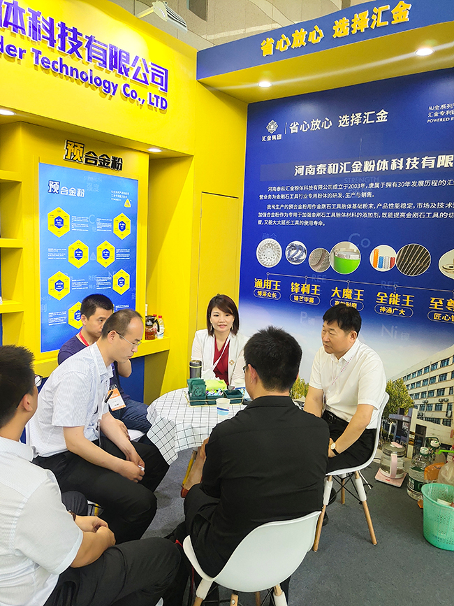 2021年5月18-21日,“第21屆中國(guó)廈門國(guó)際石材展覽會(huì)”在廈門國(guó)際會(huì)議展覽中心如期舉行。匯金集團(tuán)董事長(zhǎng)郭榮勛先生、CEO兼總裁孔攀紅女士親臨現(xiàn)場(chǎng)助陣。河南泰和匯金粉體科技有限公司預(yù)合金項(xiàng)目總經(jīng)理張秀麗、技術(shù)總工程師朱建業(yè)攜銷售精英列席此次盛會(huì),并為行業(yè)客戶帶來通用王、鋒利王、大魔王、全能王、至尊王五大預(yù)合金粉系列和加強(qiáng)合金粉系列產(chǎn)品。